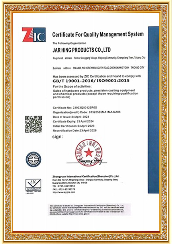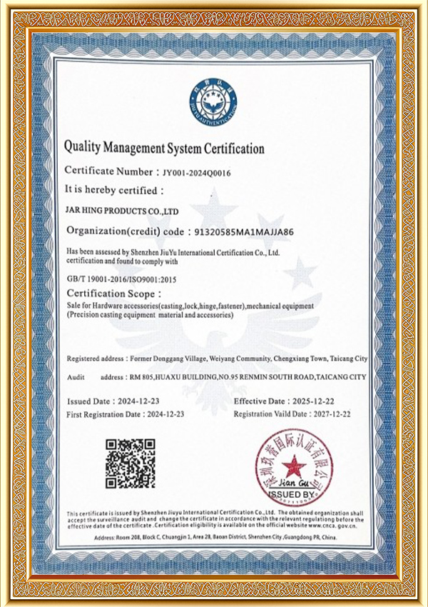 జార్ హింగ్ ప్రొడక్ట్స్ కో., లిమిటెడ్ అనేది ISO సర్టిఫికేట్ పొందిన ప్రొఫెషనల్ మరియు విశ్వసనీయమైన పారిశ్రామిక సరఫరాదారు.ఖచ్చితమైన కాస్టింగ్14 సంవత్సరాల అనుభవంతో ప్రత్యేకంగా ఆటోమోటివ్, నిర్మాణం, ఫర్నిచర్, వైద్యం, ఆహార పరిశ్రమ, ఎలక్ట్రిక్ మరియు రీసైకిల్ ఎనర్జీ పరిశ్రమలు మొదలైనవాటిలో ఉపయోగించబడే ఖచ్చితత్వ భాగాలు మరియు సేవల ఆధారితమైనవి.